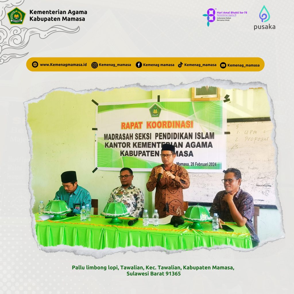 MAMASA (Kemenag),- Pada hari ini, Ibu Ketua DWP Kemenag Mamasa, Mardatillah, S.Ag, memimpin rapat koordinasi dilanjutkan dengan arisan Dharma Wanita Persatuan Kementerian Agama Kabupaten Mamasa. (Rabu, 28/2/24) Acara ini diadakan diruang pertemuan Kepala Kantor ini bertujuan untuk memperkuat sinergi antara anggota Dharma Wanita Persatuan dalam mendukung program-program Kemenag. Dalam rapat koordinasi tersebut, Ibu Ketua […]