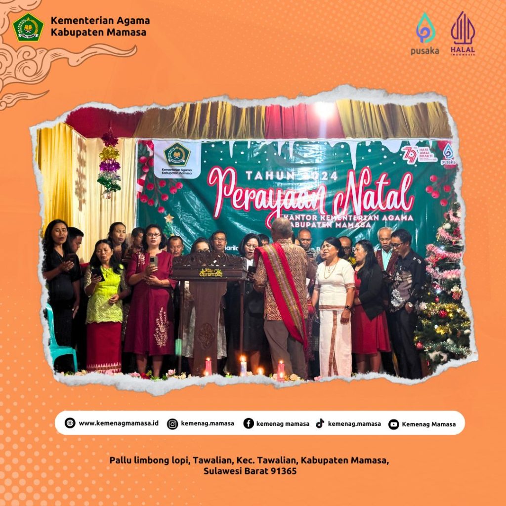 Tawalian, KEMENAGMAMASA – Dalam suasana penuh sukacita, Kantor Kementerian Agama Kabupaten Mamasa menggelar Perayaan Natal 2024 dengan tema “Marilah Sekarang Kita Menuju ke Betlehem”. (Selasa, 24/12/24) Halaman kantor disulap megah seperti gedung mewah, menciptakan suasana khidmat dan meriah bagi para tamu undangan. Acara dimulai dengan ibadah yang dilayani oleh Ibu Pdt. Enni Rosa, mengingatkan makna […]