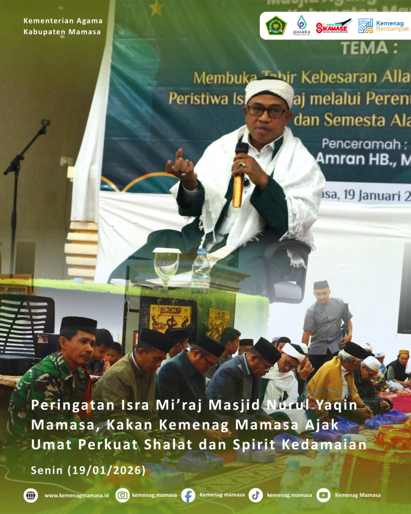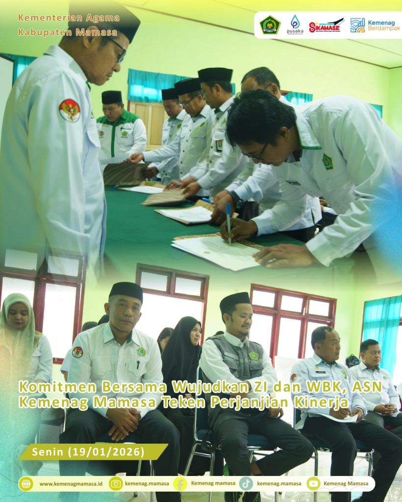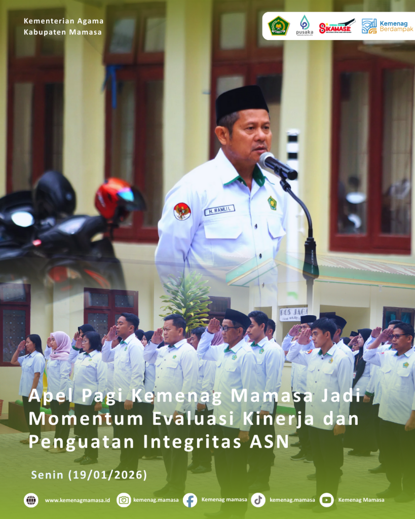 Mamasa (Humas) — Kementerian Agama Kabupaten Mamasa menggelar Rapat Koordinasi (Rakor) Pendidikan Islam (Pendis) yang diikuti oleh seluruh Aparatur Sipil Negara (ASN) madrasah se-Kabupaten Mamasa. Kegiatan tersebut dilaksanakan di Mambi, Selasa (27/1/2026). Rakor dipimpin langsung oleh Kepala Seksi Pendidikan Islam Kemenag Mamasa, Abdul Hafid, S.H.I., M.M. Dalam arahannya, ia mengajak seluruh ASN madrasah untuk terus […]