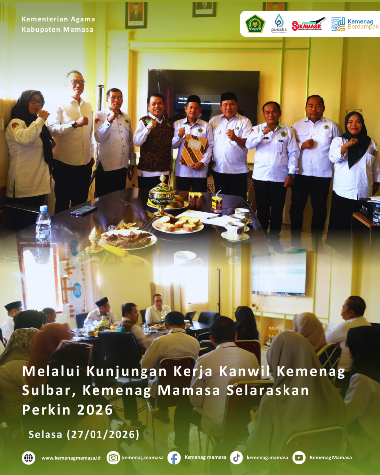 Mamasa (Humas) — Kantor Kementerian Agama Kabupaten Mamasa menegaskan komitmennya dalam mewujudkan kinerja berintegritas melalui penguatan Zona Integritas (ZI). Komitmen tersebut ditegaskan dalam Dialog Kinerja bersama Kantor Wilayah Kementerian Agama Provinsi Sulawesi Barat yang digelar di ruang Kepala Kemenag Mamasa, Selasa (27/1/2026).